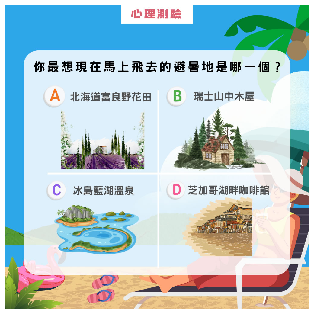 選一個夢想避暑地,測你的壓力指數💭