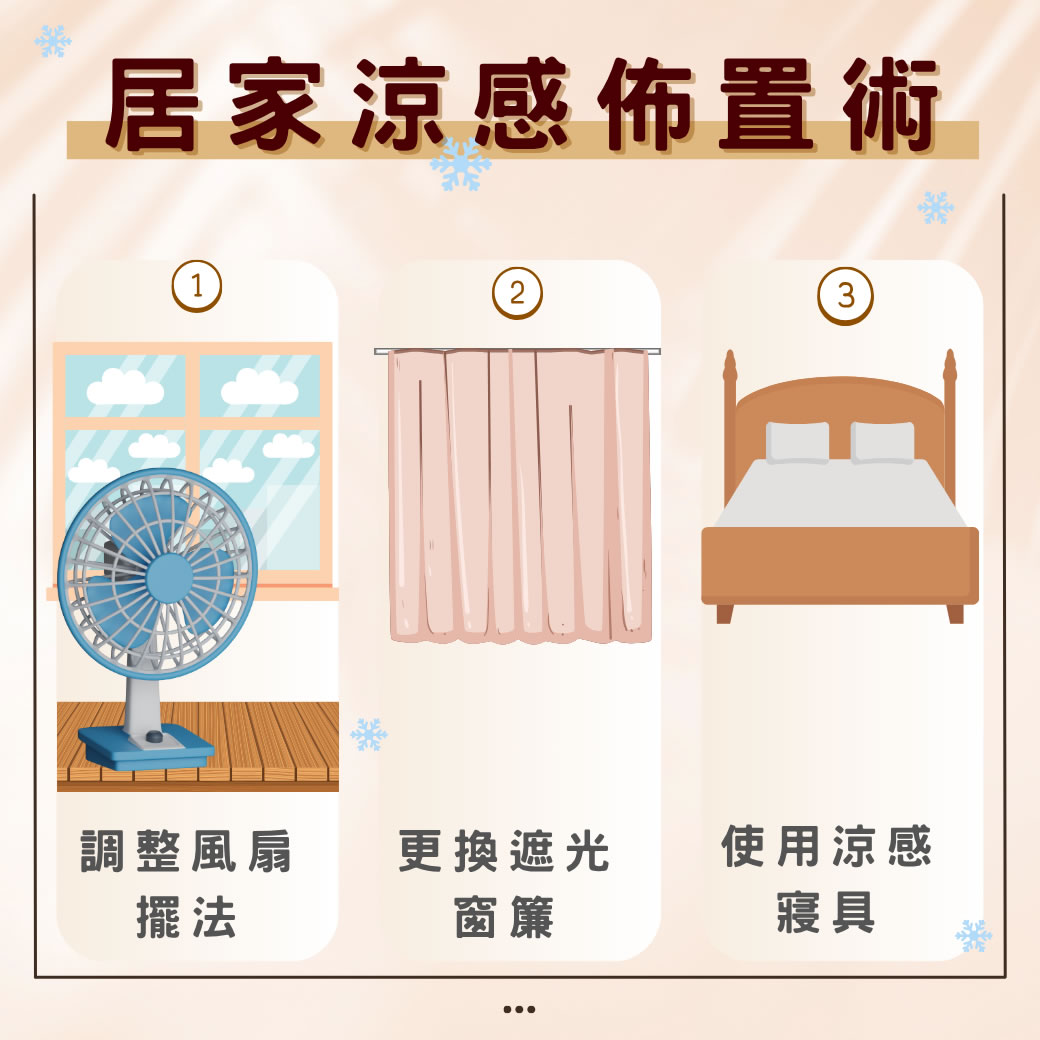涼感床墊、涼感枕套、竹蓆或亞麻材質的寢具,