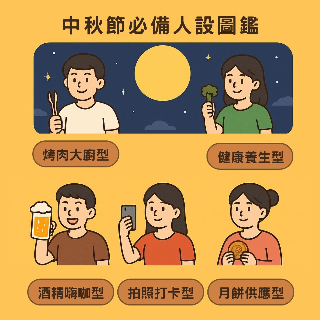 原來中秋節重要的不只是月亮、月餅、烤肉,還有每年聚會裡那群「有趣人設」的親友們,有你們才有團聚的味道。