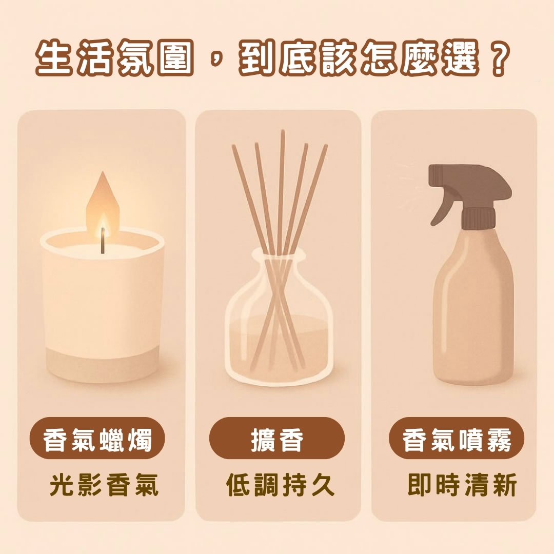 《香氛蠟燭 vs 擴香 vs 香氛噴霧 🔥💨🌸|到底該怎麼選?》