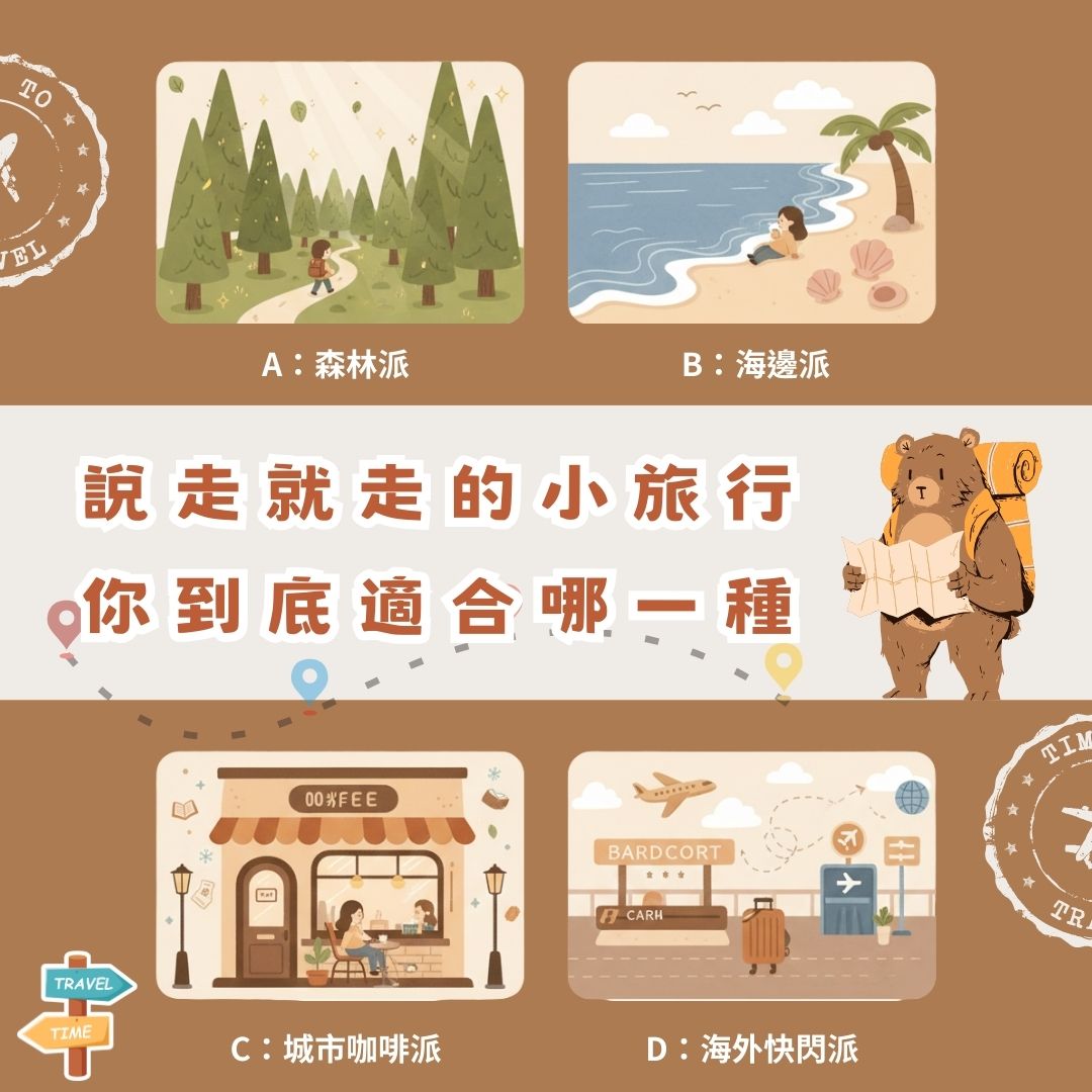 《12 月最適合的小旅行類型心理測驗 ✈️🌲🌊☕》